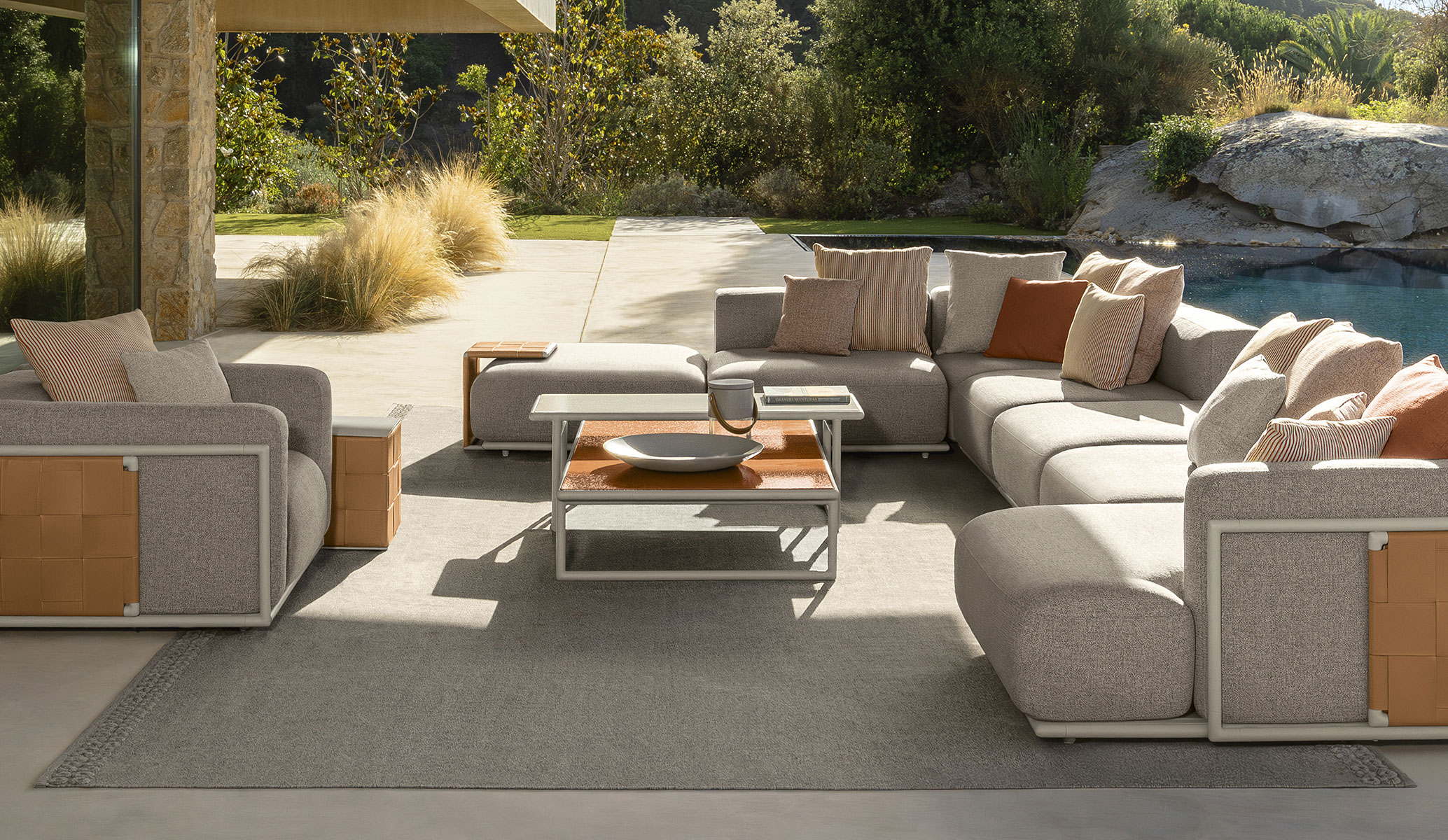 Sophisticated and functional, the Tressé coffee table is a true work of design. The attention to detail is reflected in the choice of materials: the glazed and hand-worked lava stone is masterfully inserted into the tubular aluminium structure. A perfect combination that gives character to your garden or outdoor living.