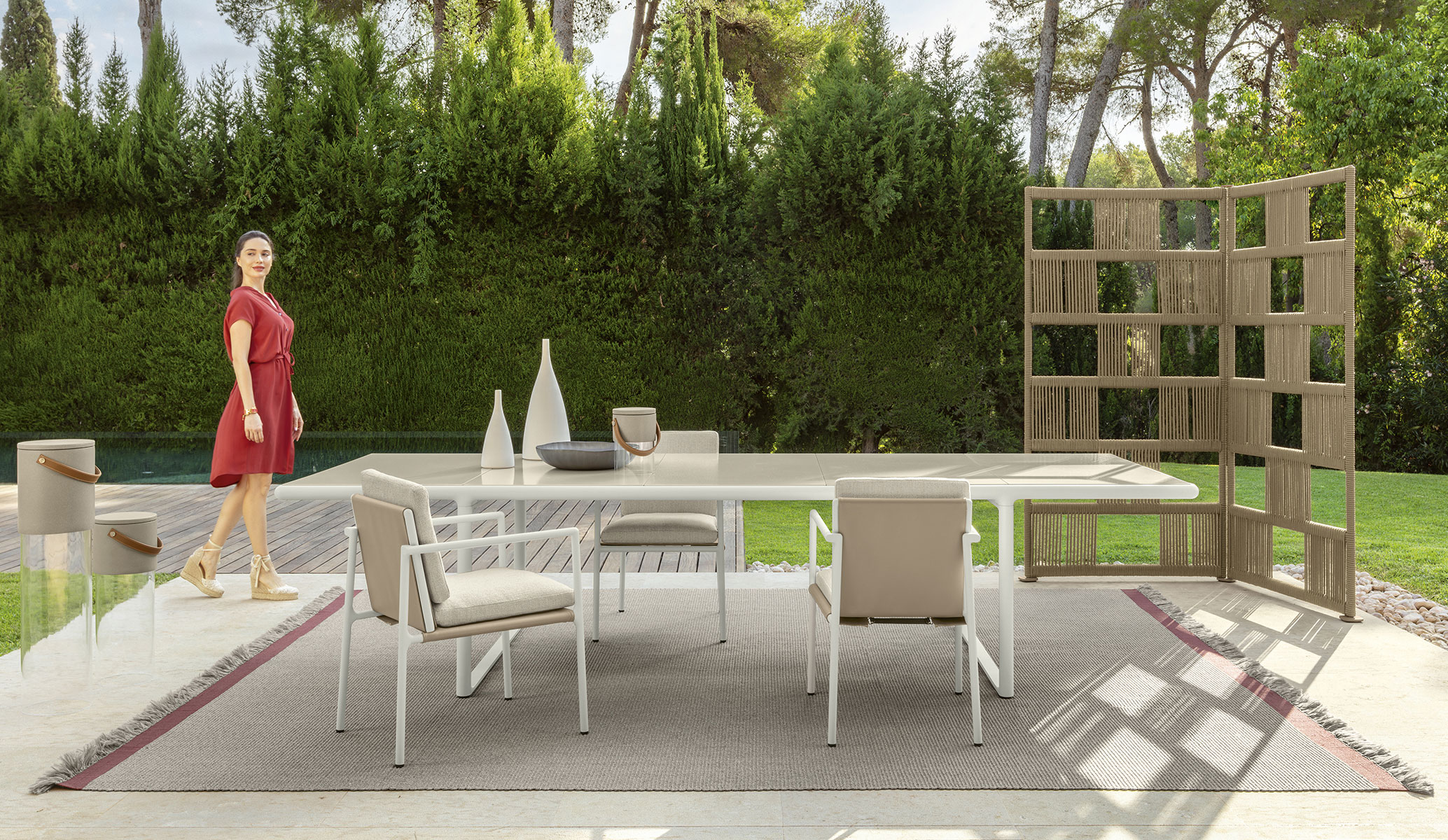 The Tressè dining table is able to give unforgettable moments of conviviality. Fine finishes and attention to detail, make it a work of sophisticated design, durable and functional. The top in glazed lava stone, is handmade and masterfully inserted into the tubular aluminum structure. This combination of elements, enhanced by a wide range of color variations, gives character and elegance to outdoor living adapting to any type of outdoor space.