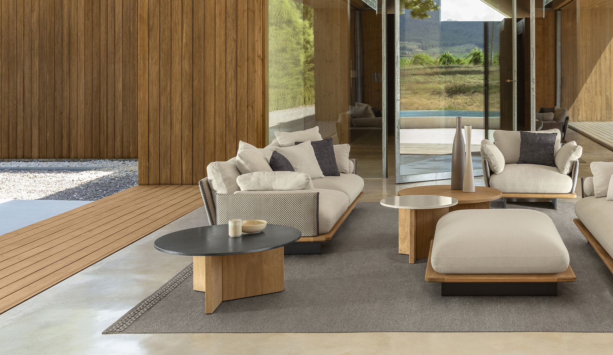The 3-seater sofa Venice is a tribute to the elegance and style of the homonymous lagoon city, which is reflected in the design of the wooden bases that seem to float like vessels. On them are large seats with soft lines. The nautical style is recalled in the textures of the fabrics that cover the backs and armrests. The Venice sofa gives charm and lightness to your outdoor living room and garden, offering a sublime solution of comfort. A wide choice of fabrics allows you to adapt this piece of furniture to any open space.