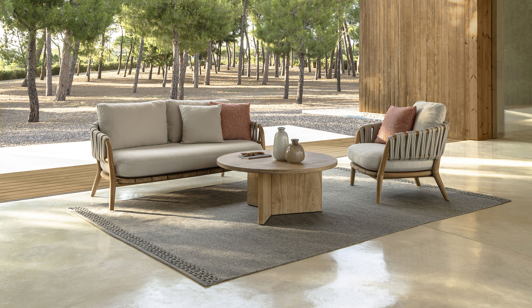 The Venice coffee table is defined by a monolithic design, which integrates naturally into the outdoor environment, thanks to the intrinsic charm of the materials. The solid wooden structure accoya supports the lava stone top, available in various colors, chosen to recall the warm shades at sunset and cold at dusk of the Venetian seas. The effect is made more evident by the polished ceramic finish of the stone, and gives a romantic atmosphere to the outdoor living.