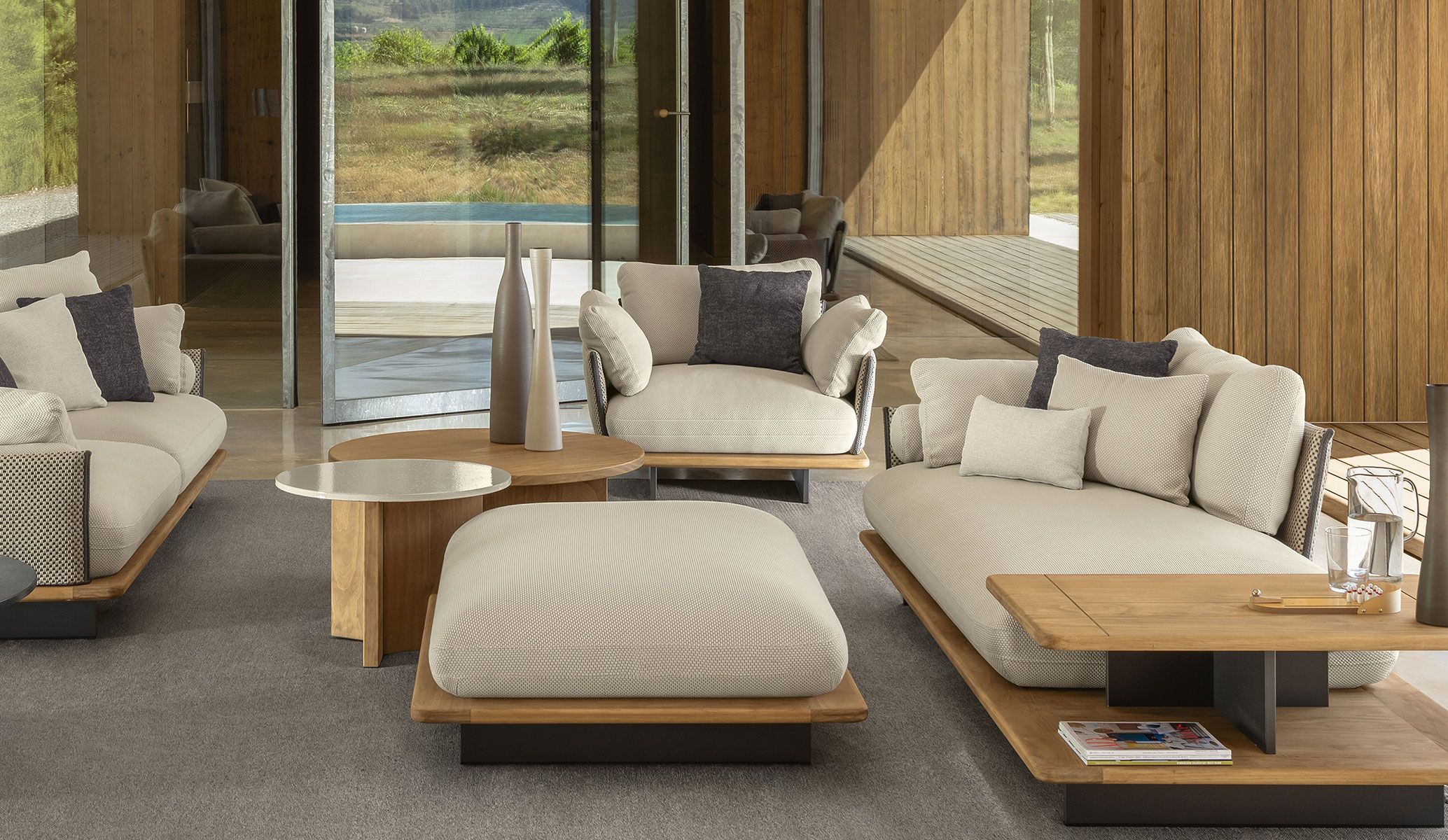 The Venice lounge chair is perfect for enjoying relaxing moments in the garden. Teak wood and fabrics in enveloping colors, give charm and lightness to this piece of furniture that pays homage to the homonymous lagoon city. A solid wooden frame embraces the wide and comfortable seat. The back that wraps the cushions with soft lines, is embellished with a braided rope that recalls the nautical style. A comfortable and elegant solution to enhance any outdoor living.